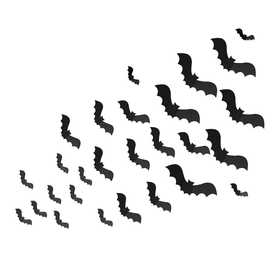 Create a super scary Halloween display with these Bat wall decorations. The pack contains 30 bat decorations in three different sizes. The bats can be stuck to surfaces with the low tack stickers provided.