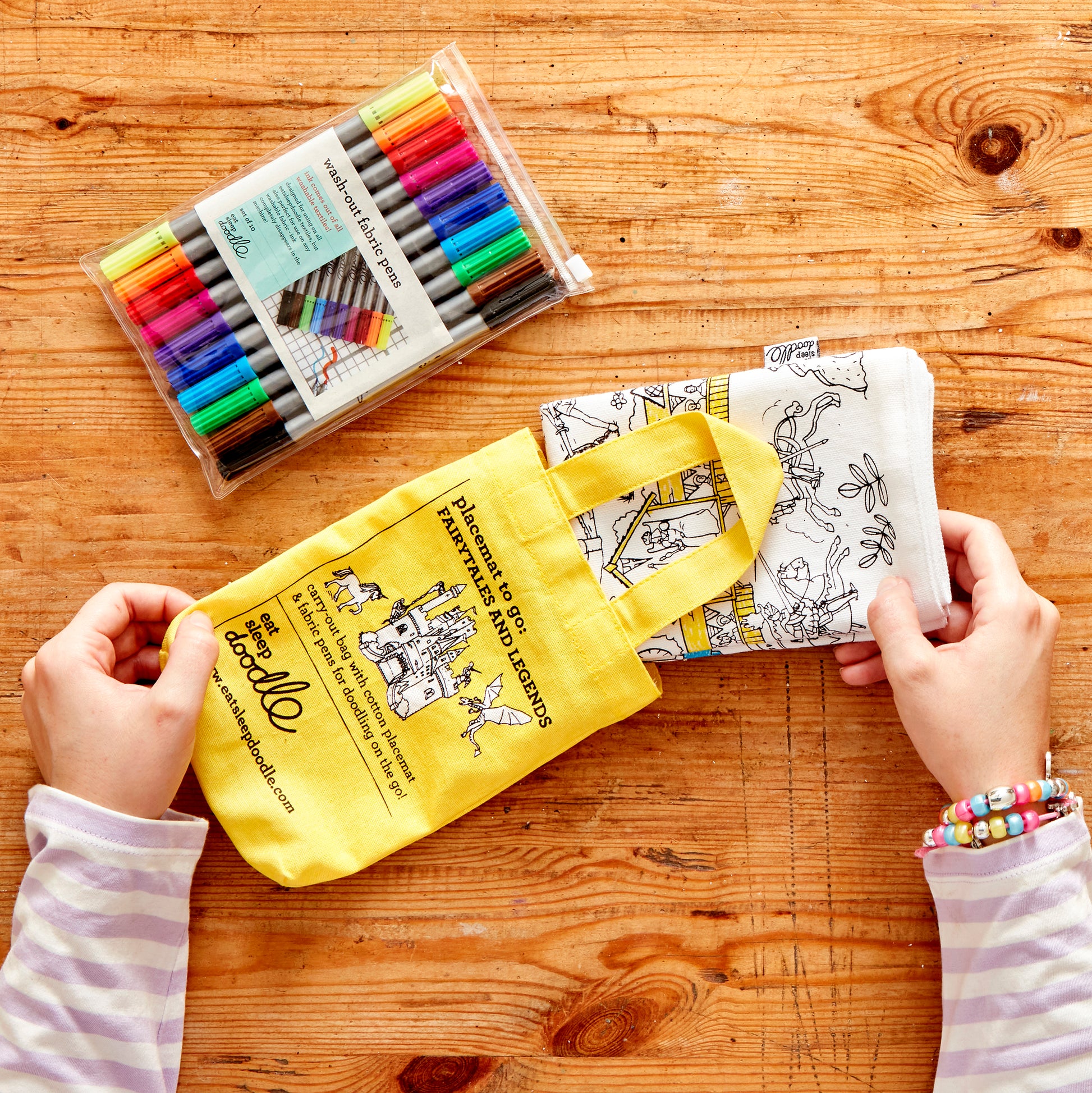 This clever placemat designed by Eat, Sleep Doodle comes in its own mini tote bag and with a set of 10 washable felt tip fabric pens to colour it in with.