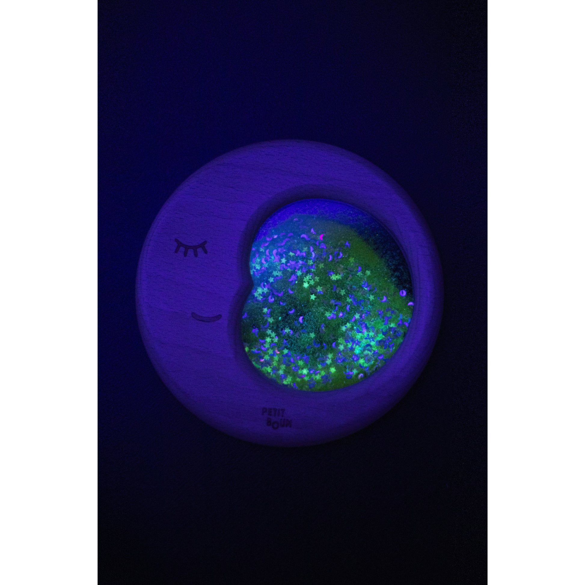 A little piece of the galaxy at the tip of your fingers!- all the magic of Petit Boum bottles but inside a beautiful FSC beech wood moon-shaped frame.