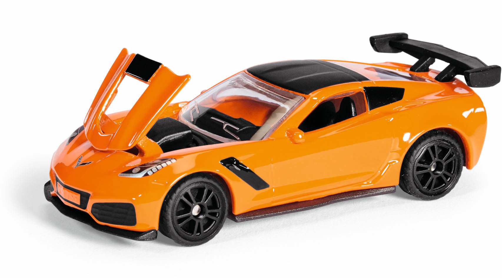 A toy Chevrolet Corvette Zr1 a Muscle car with a bonnet that opens and the wow effect by Siku.